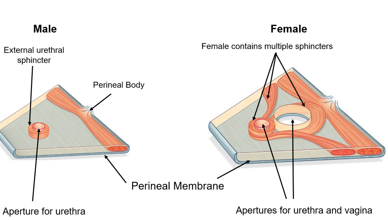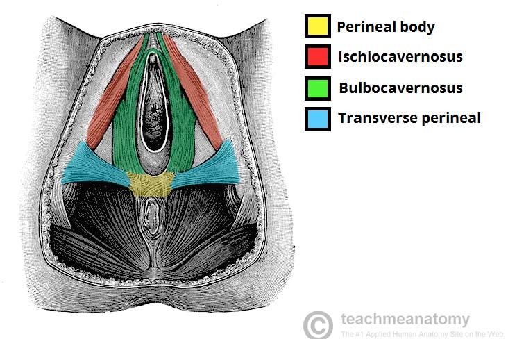 Functions: An attachment site for muscles of the pelvic floor/perineum and the perineal membrane. Supports against prolapse in females