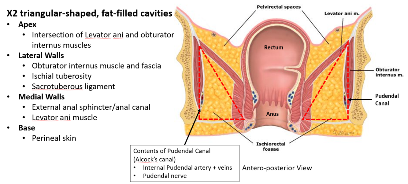 Borders: Located laterally to the anus within the anal triangle