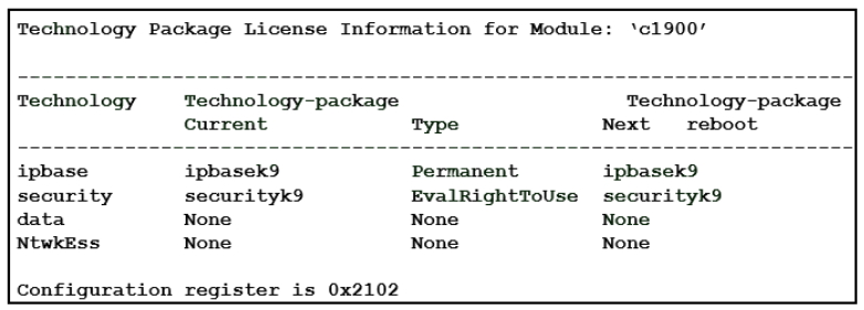 Refer to the exhibit. What show command displays whether the securityk9 package is installed and the EULA license activated?