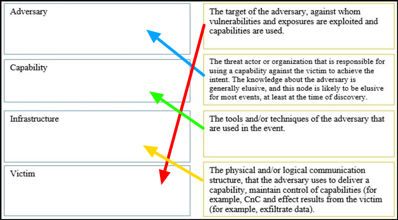 Match the intrusion event defined in the Diamond Model of intrusion to the description.