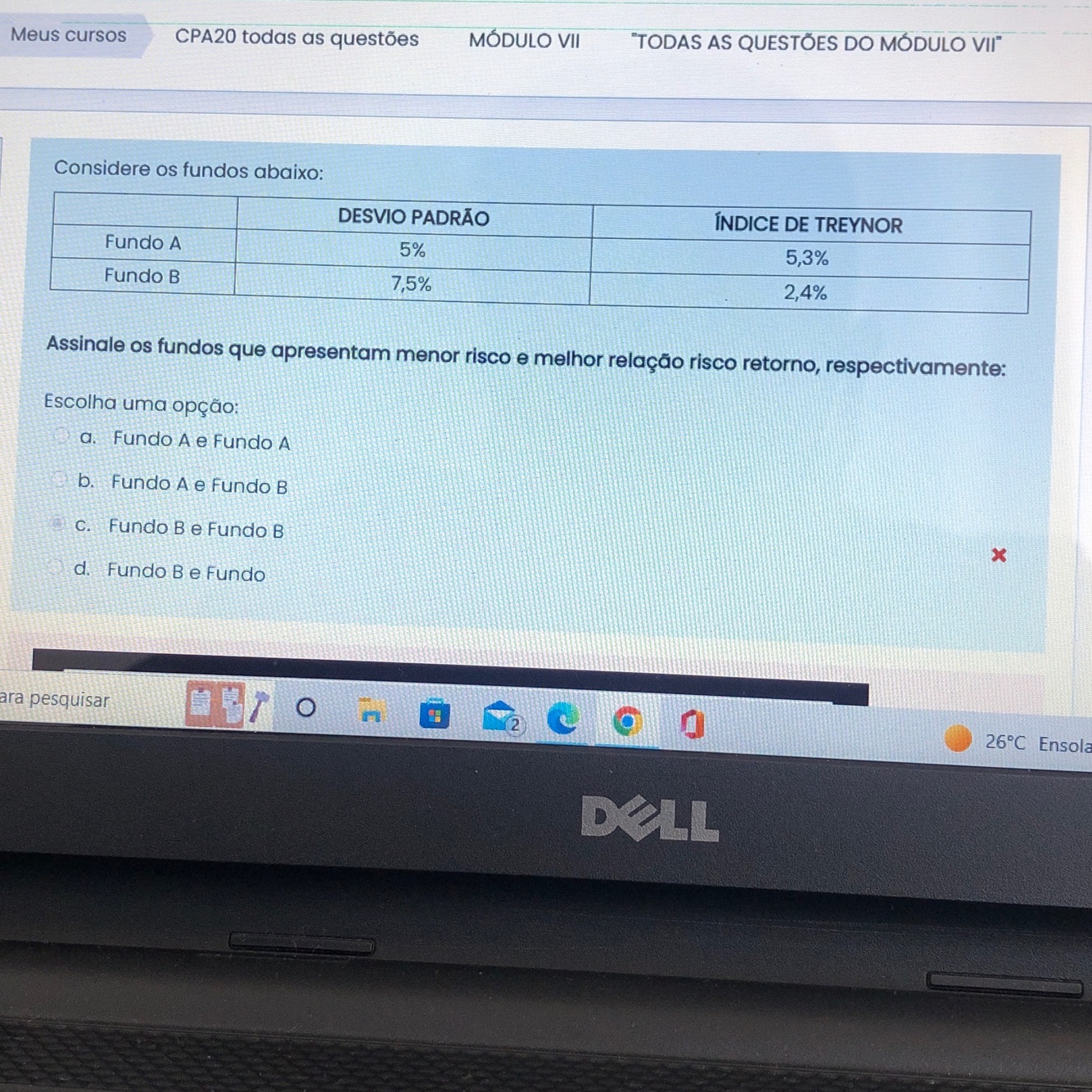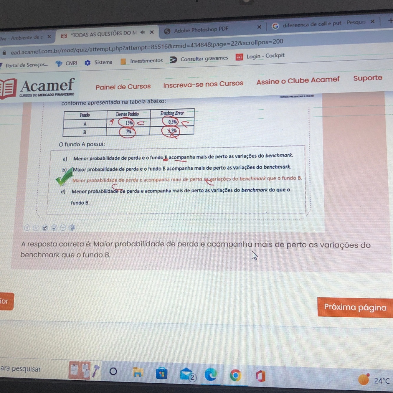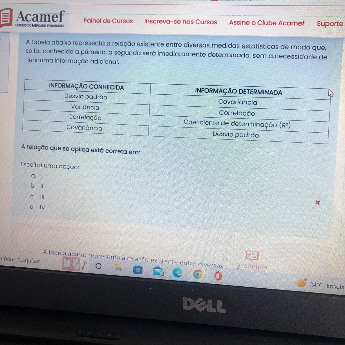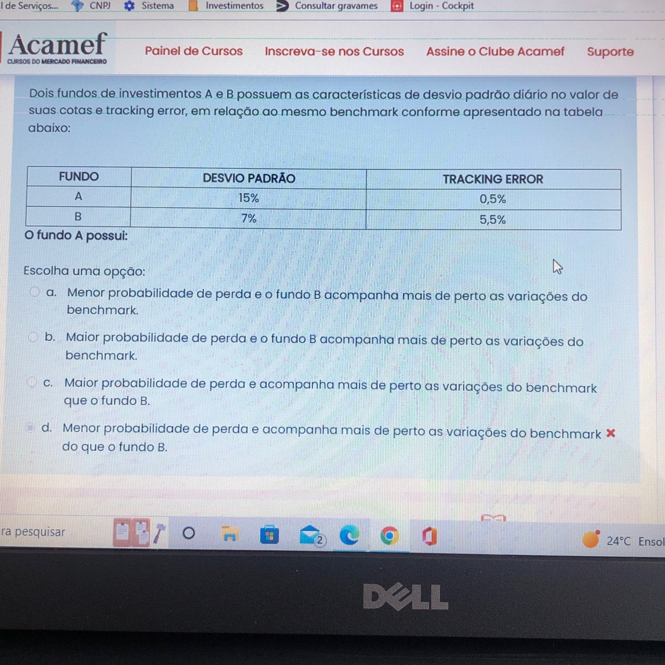 Quanto maior o desvio padrão, maior a possibilidade de perda