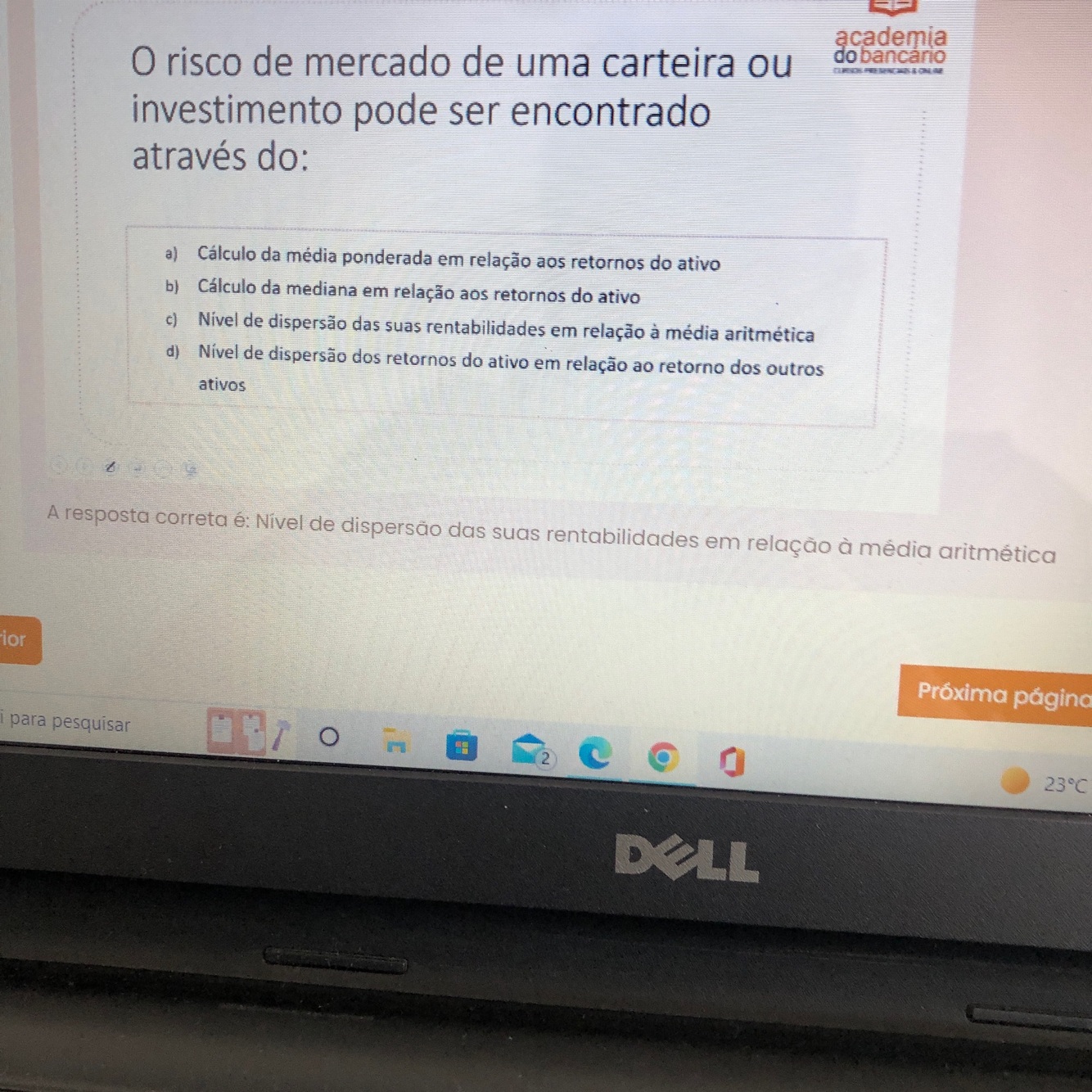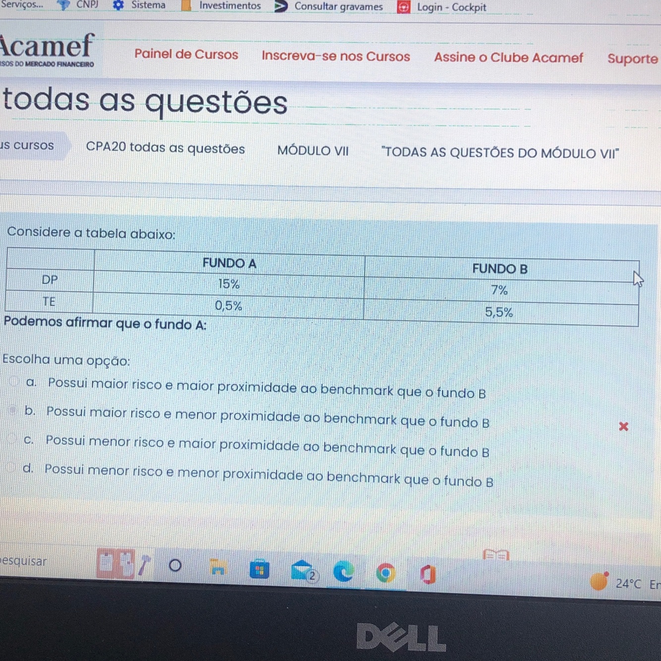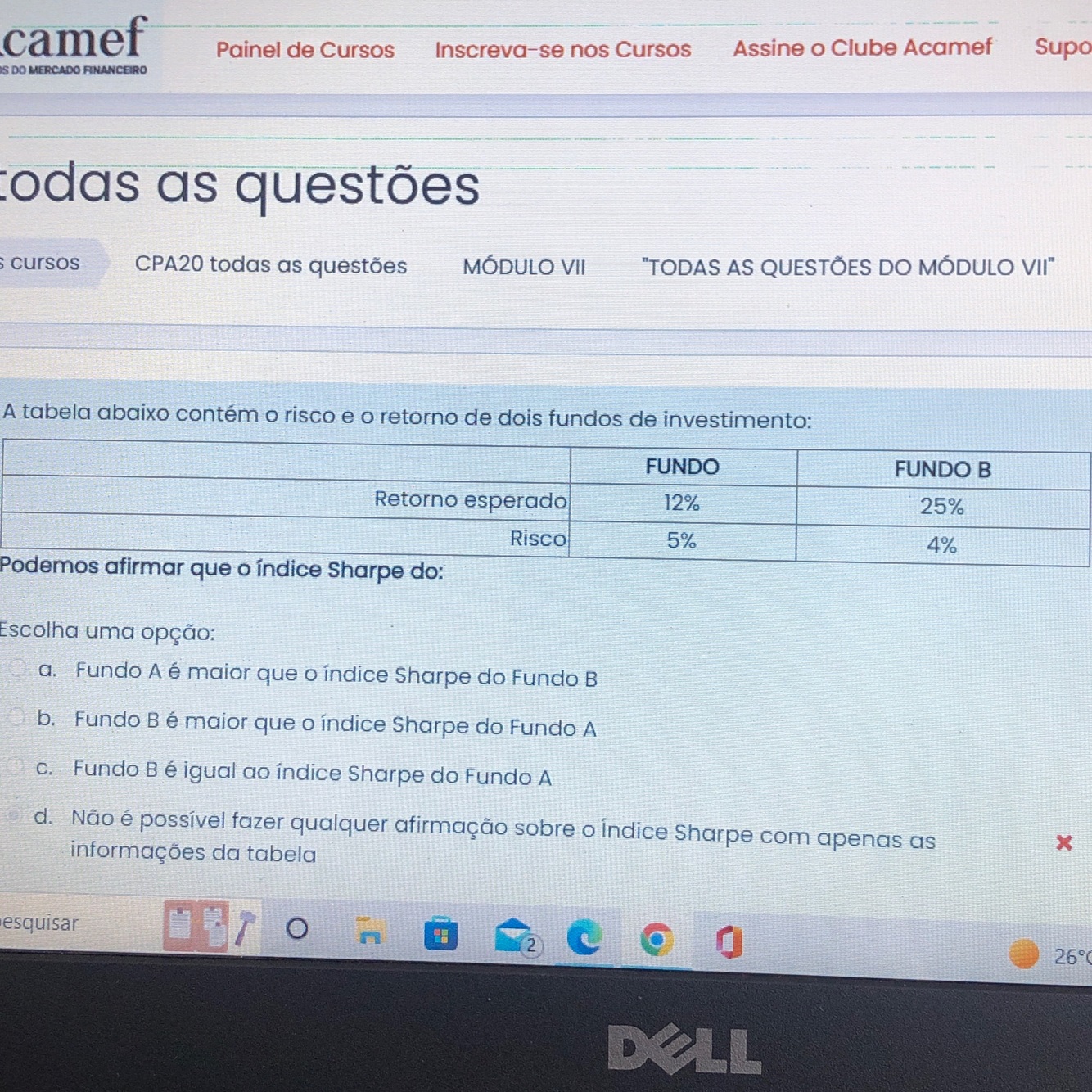 Quanto maior o desvio padrão, maior a possibilidade de perda