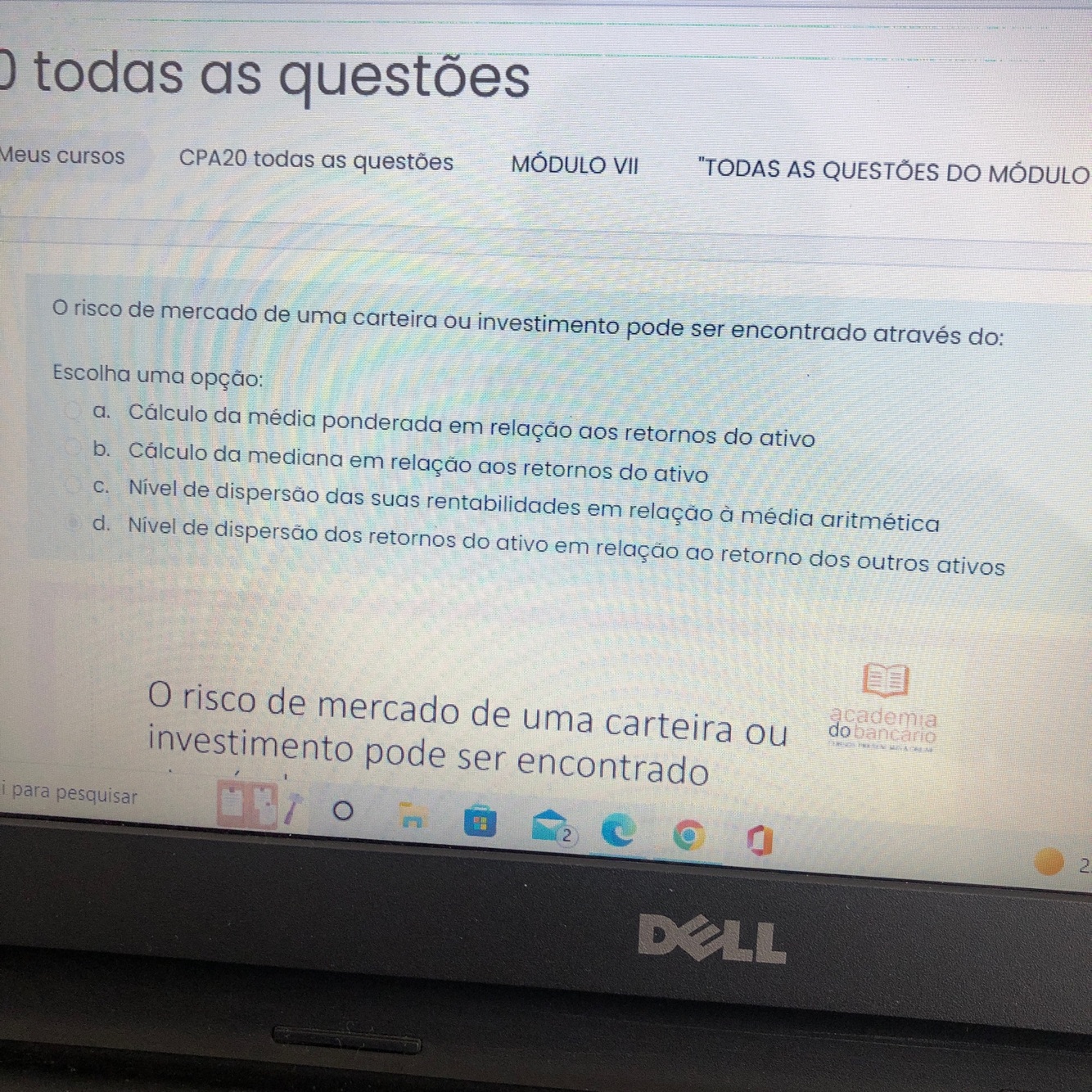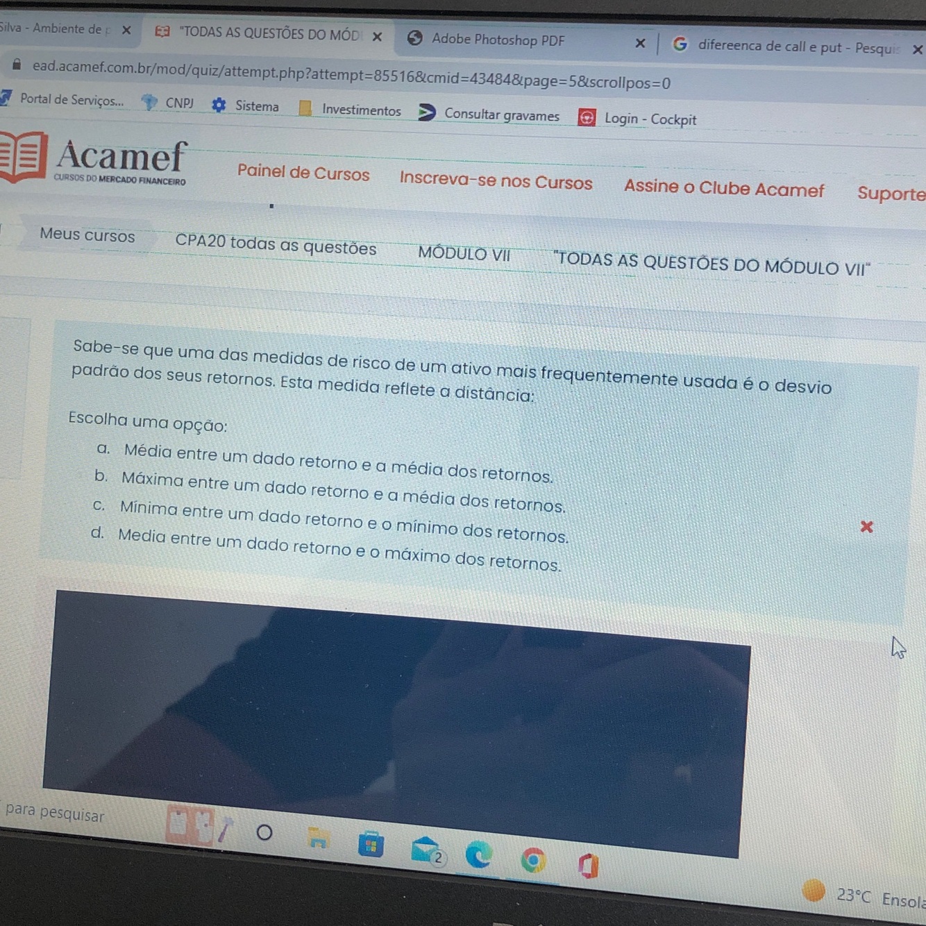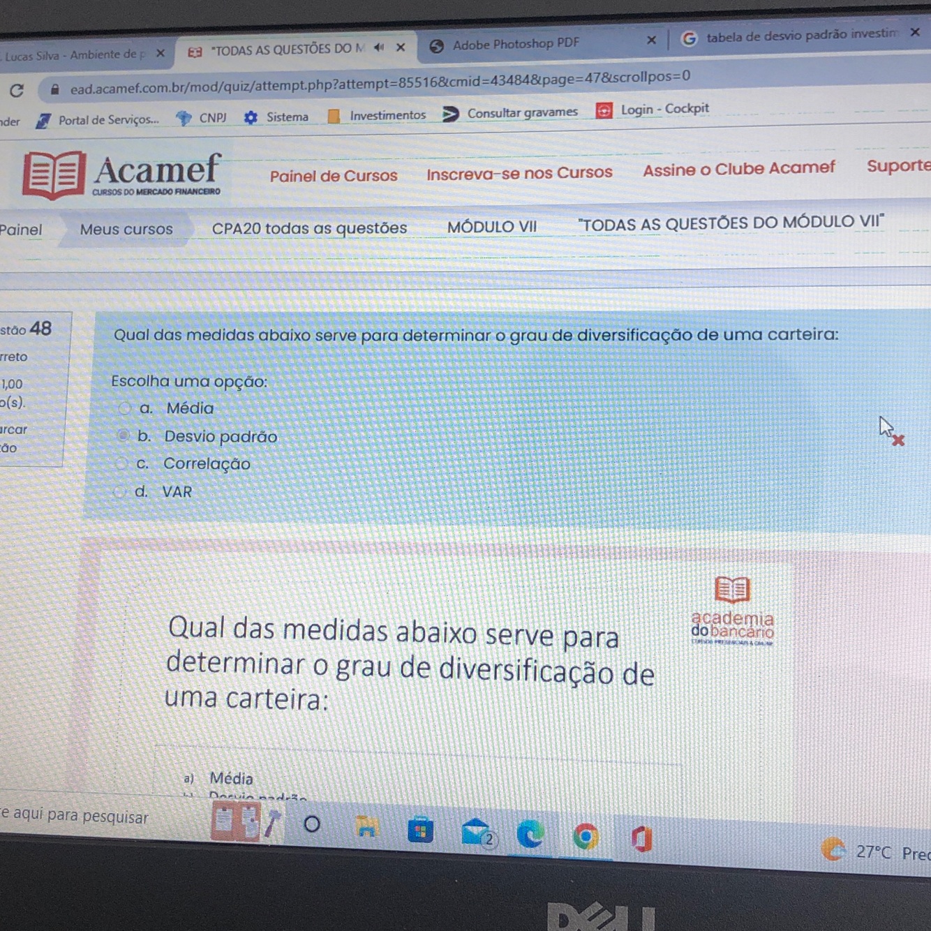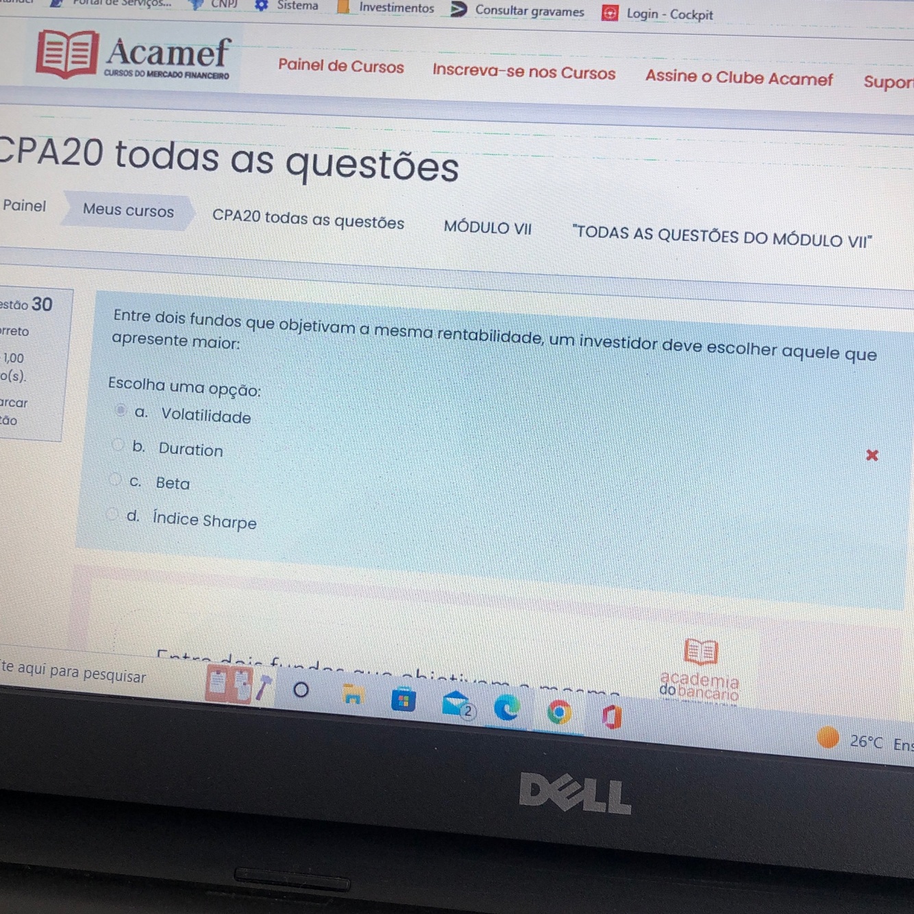Quanto maior o desvio padrão, maior a possibilidade de perda