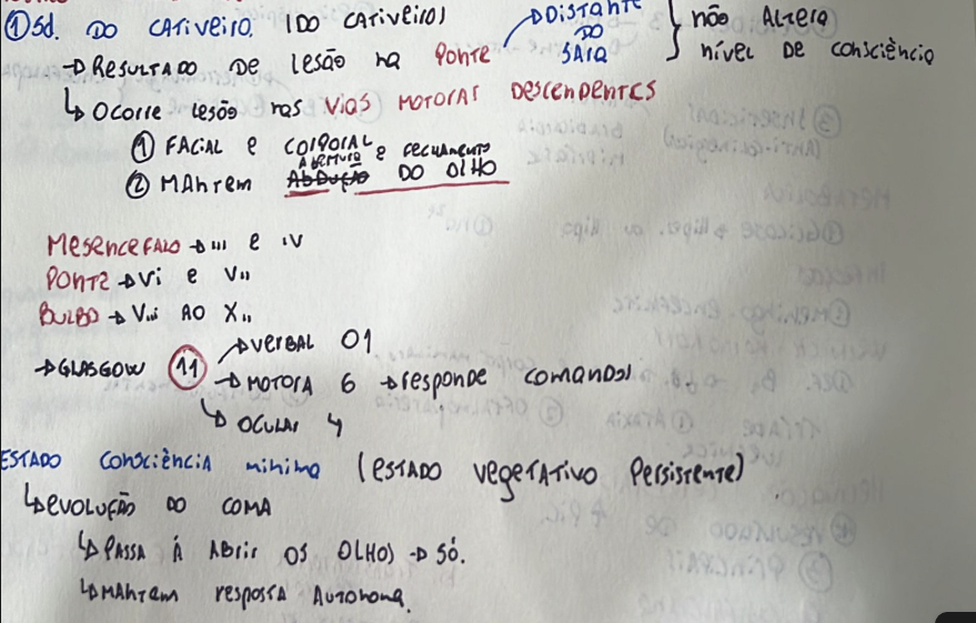 Coma (Não responde á estimulos, olhos fechados e ausência de ciclo sono-vigília)
