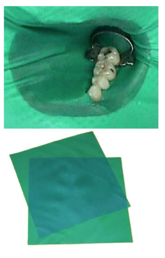 hole is punched in the dam through which the selected tooth crown passes, so isolating the tooth from the rest of the mouth