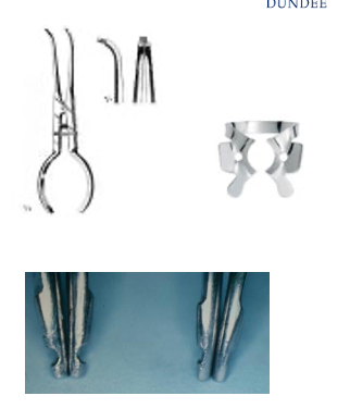 •As clamps have been know to fracture they should not be placed in the mouth unless secured with floss or first attached by their wings to the rubber dam