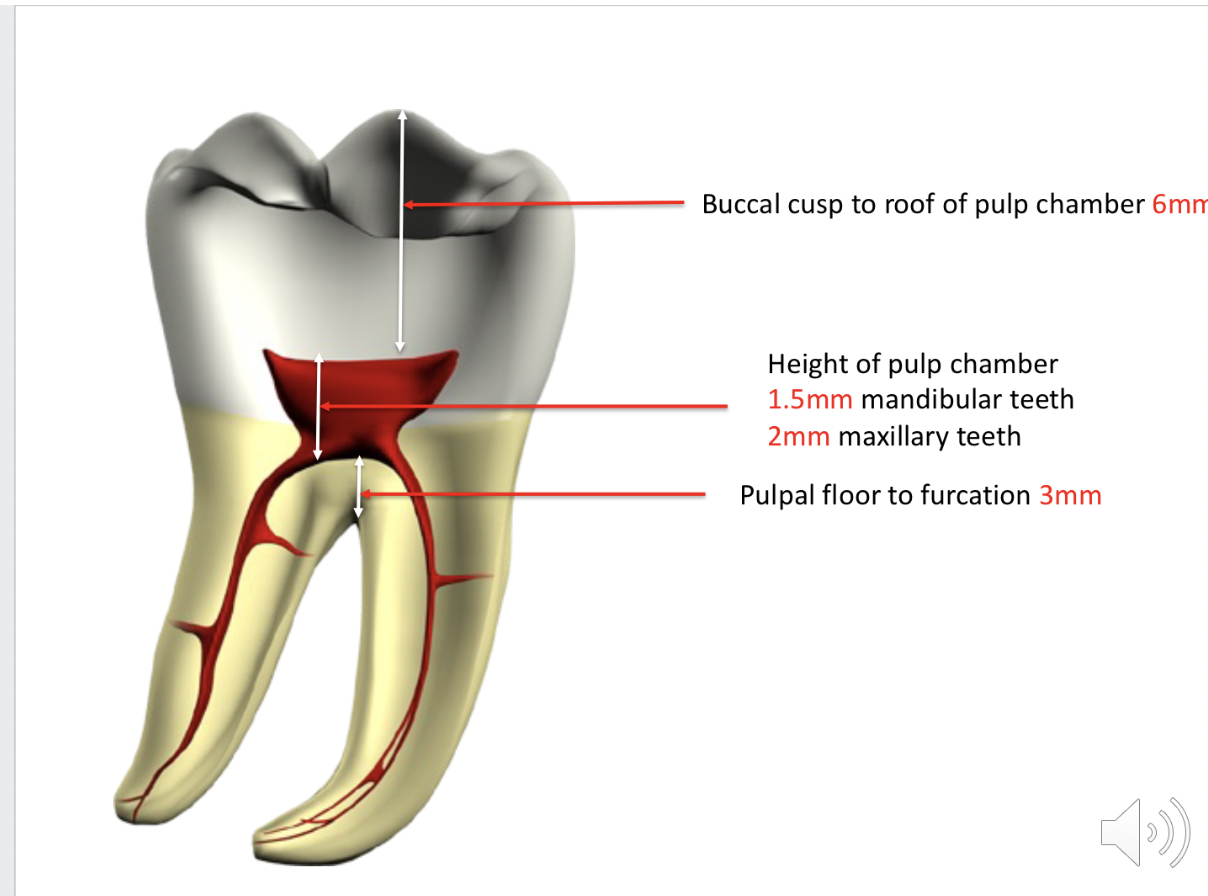 what are the general measurements of the pulp chamber in molars