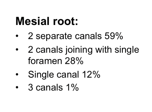 how many canals are found in the mesial root of first molars