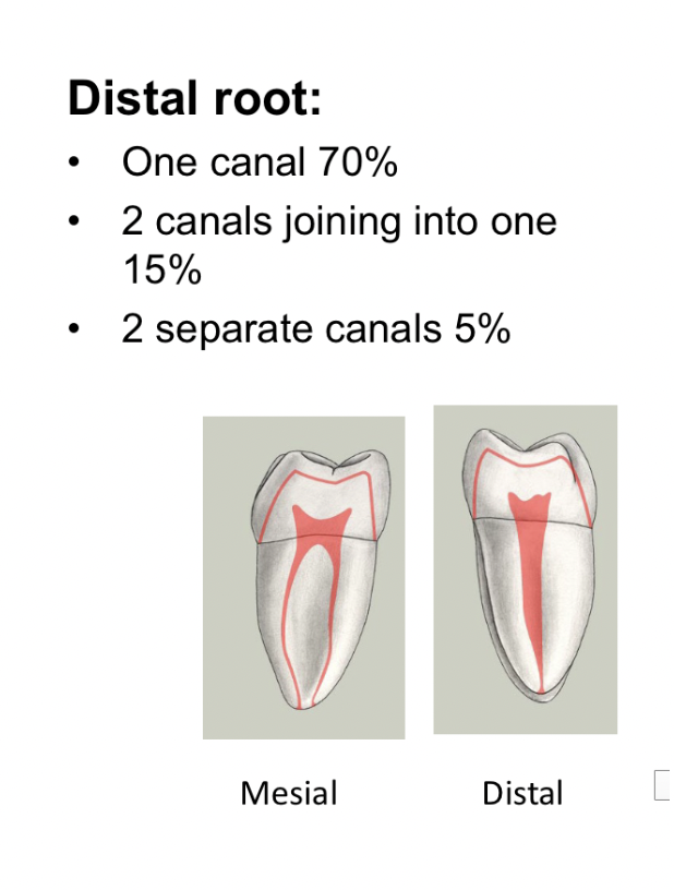 how many canals are found in the distal root of mandibular first molars