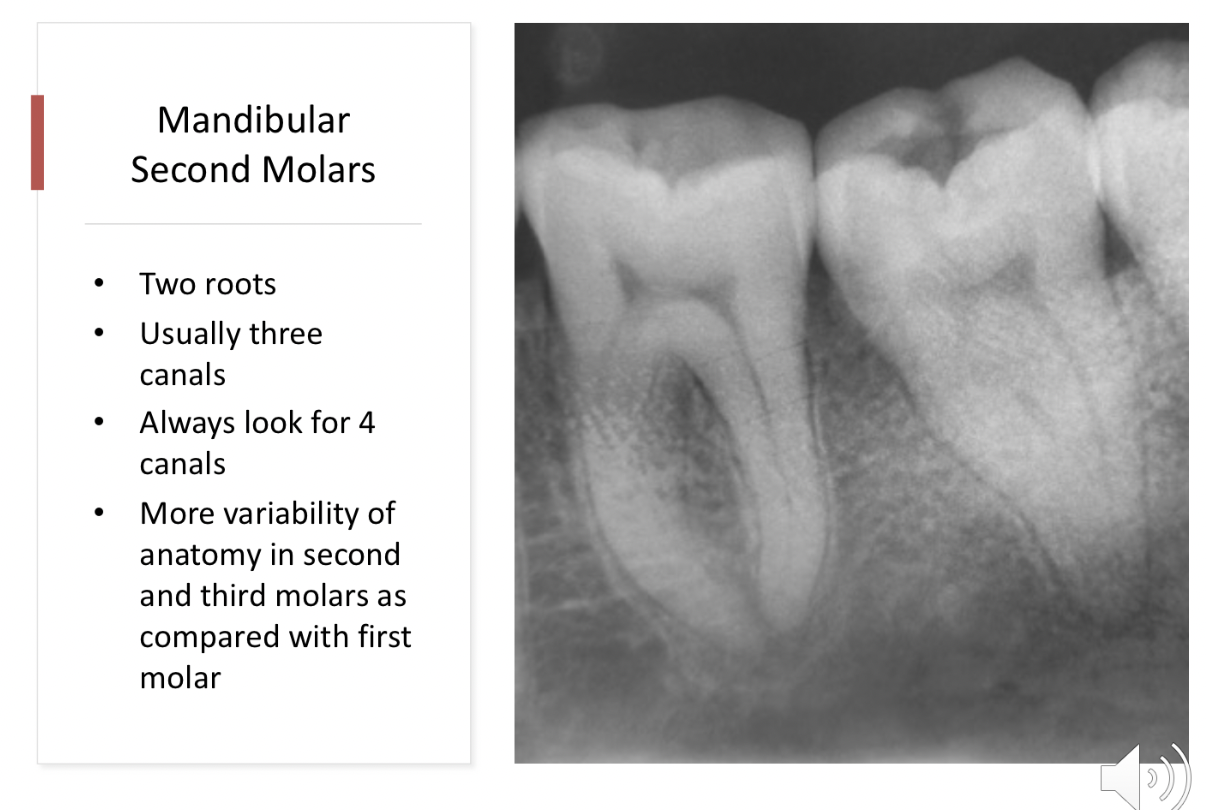 hoo many canals in a mandibular second molar