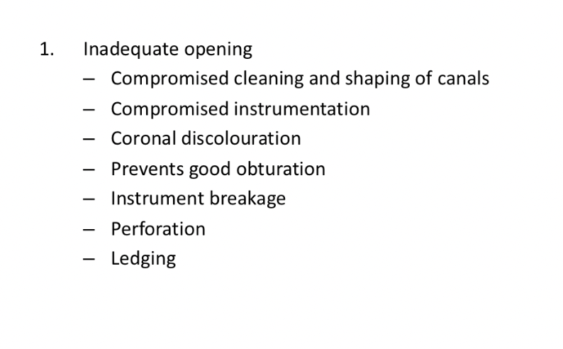 Allow to debris to clog and block orifices or canals, caused by dentinal debris and amalgam filling
