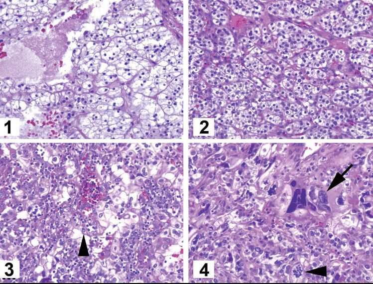 Tumors are divided into Type 1 (low nuclear grade) and Type 2 (high nuclear grade).