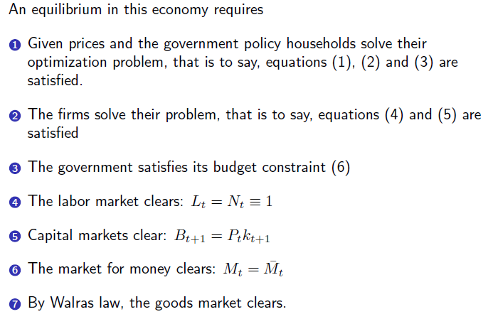 Equilibrium conditions