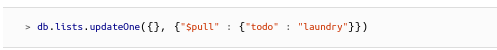 <p>The$pulloperator removes from an existing array all instances of a value or values that match a specified condition.</p>
