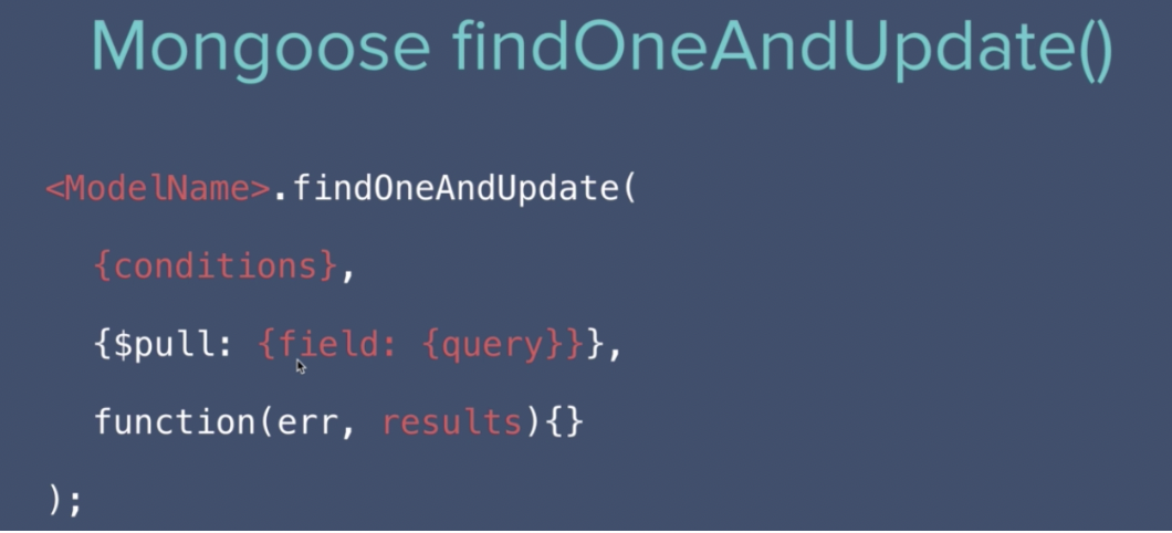 .deleteOne(, Callback);