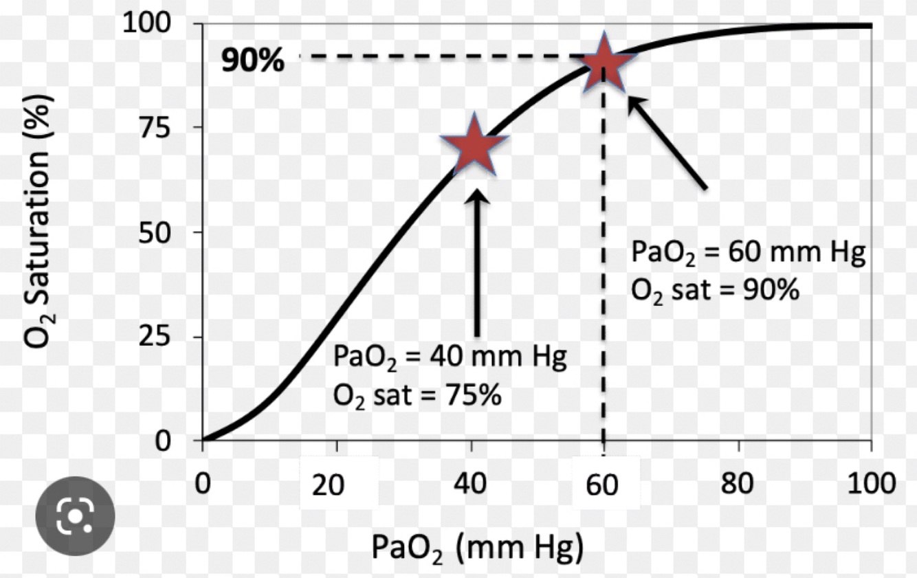 Correlates with paO2 60 mmHg
