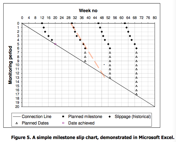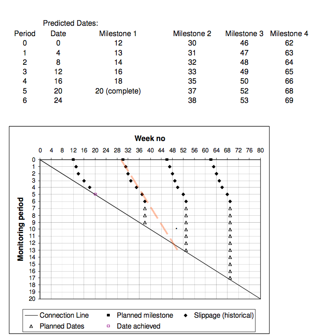 chart showing milestone progress milestone (achievement or slippage) is recorded by project manager on a regular basis (weekly).