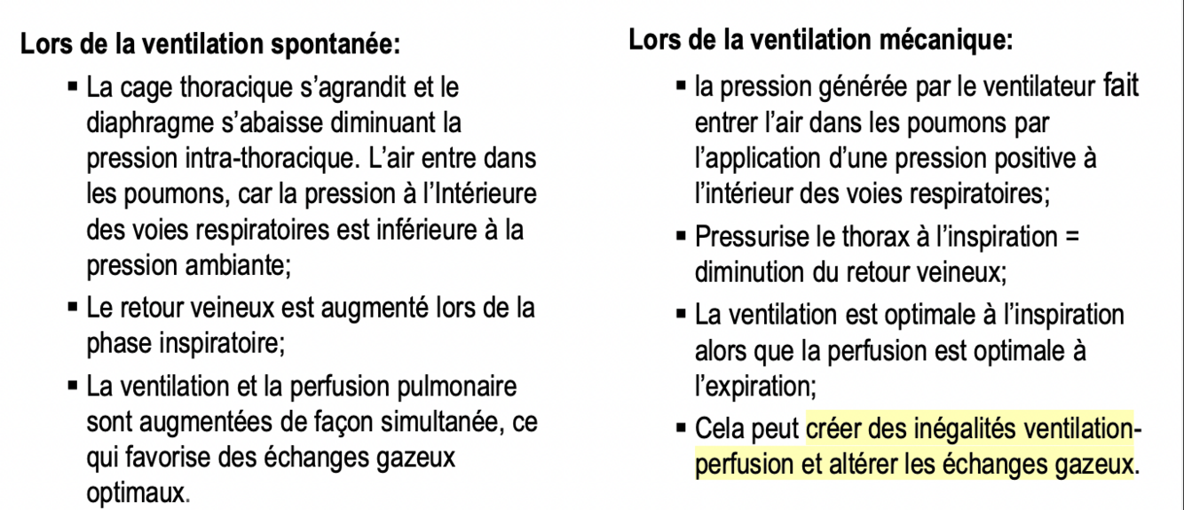 ventilation mécanique vs ventilation spontanée