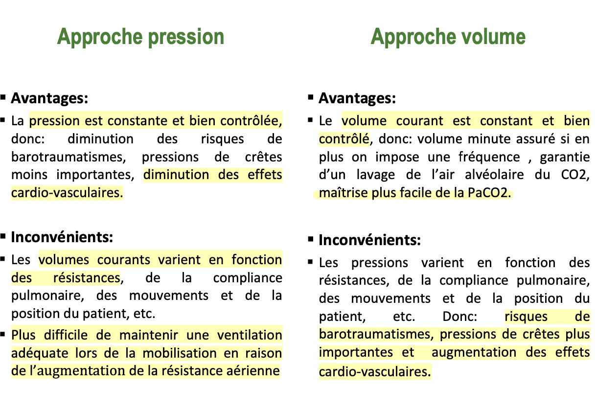 quelles sont les deux approches qui permettent de ventiler mécaniquement un patient?