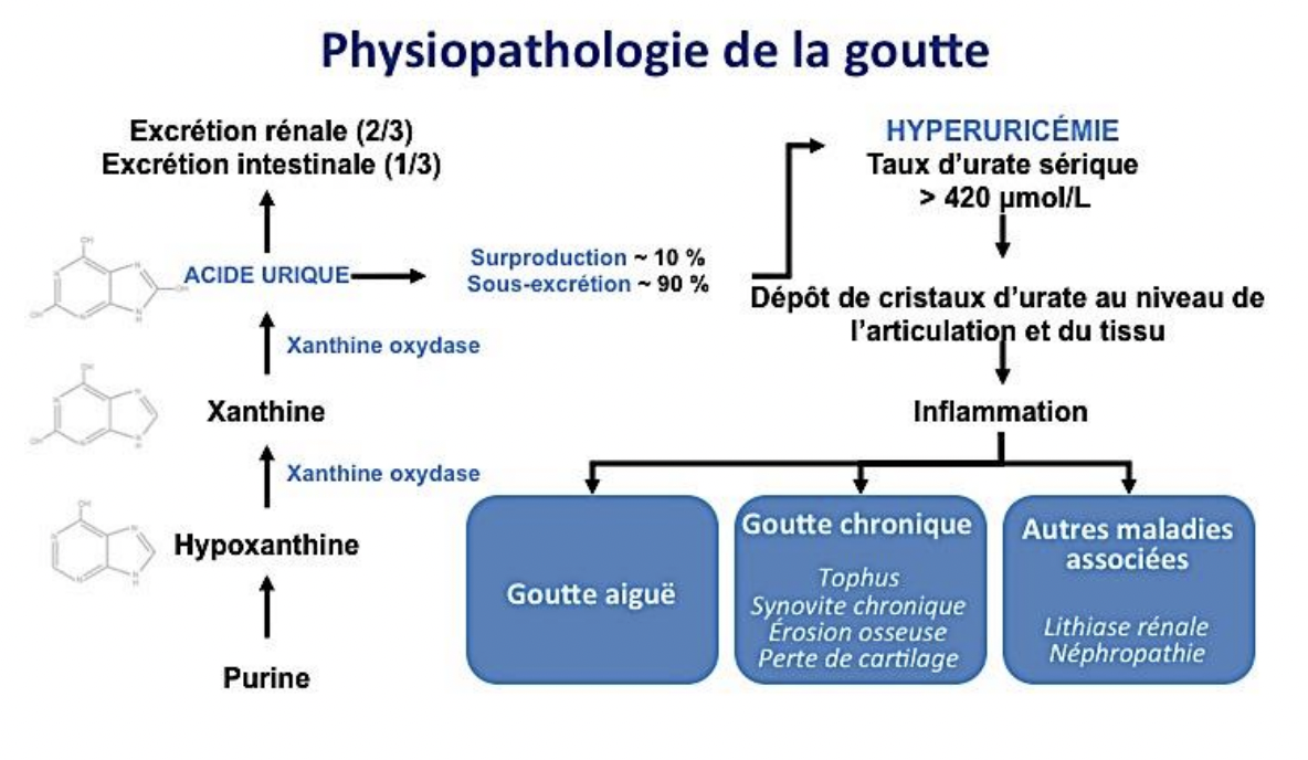Les cristaux impliqués dans la goutte sont des cristaux d’urate de sodium.