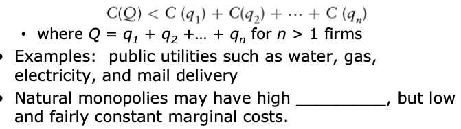 one firm can produce total output of the market at a lower cost than several firms could