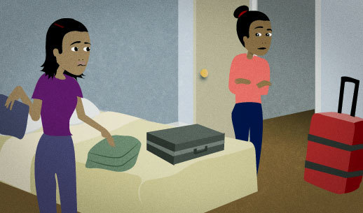 Your daughter is packing for a weekend vacation. She’s packed two large suitcases and a backpack.You think that’s too much. You say: