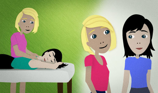 You’re studying massage therapy. You’re not professional at it yet, but you need to practice. You’re talking with your roommate about your training, and you want to ask her to let you practice on her. You say: