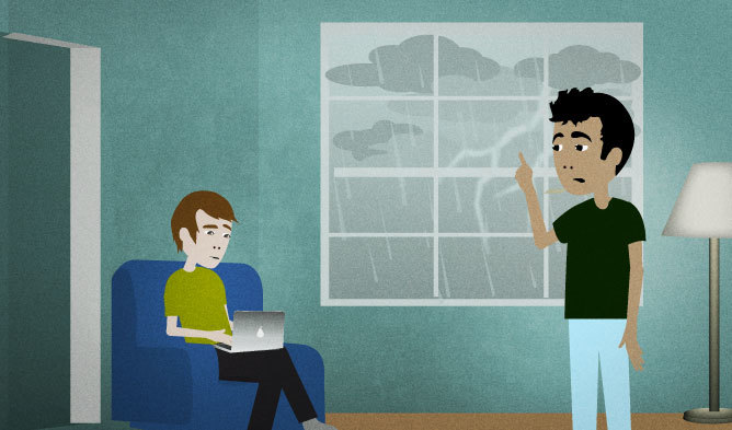 It’s been raining a lot for the last few days. You look outside and it’s still raining hard today. You comment on it to your roommate.