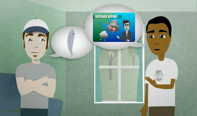You and your roommates are planning what to do this weekend. Someone suggests going fishing, but you watched the news this morning and heard that the weather is going to be bad this weekend.