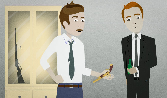 You have an antique gun that used to belong to your grandfather. You have visitors from your church over at your house, and someone is looking at the gun. You explain where it came from.