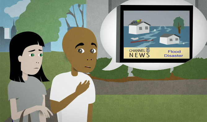 There was a major flood nearby. You’ve been watching news reports about it. You and a coworker are talking about how bad it is for the people that live there.