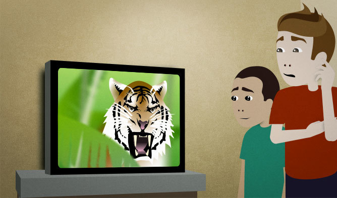 You’re watching a documentary about tigers. There’s a shot of a tiger that looks really scary. You imagine how dangerous it would be to be close to a tiger like that. You comment on it to your nephew, who’s watching the show with you.