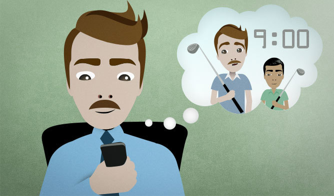 You’re going to play golf tomorrow with a group of friends. You’re texting a friend to tell him the time that you’re going to start.