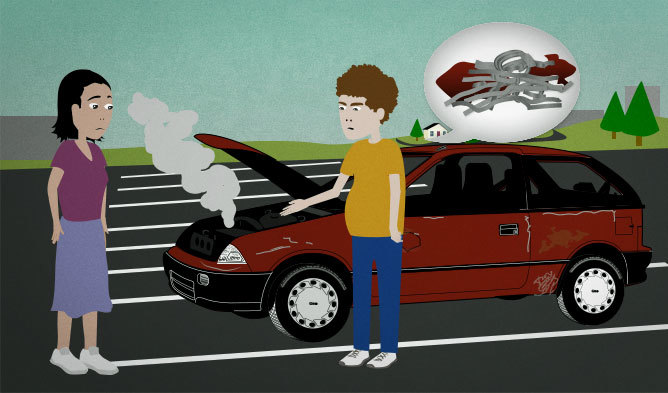 Your car’s engine broke down. The car is really old, so you’ll have to spend more to fix it than the actual value of the car. You suggest getting rid of the car at a junk yard.