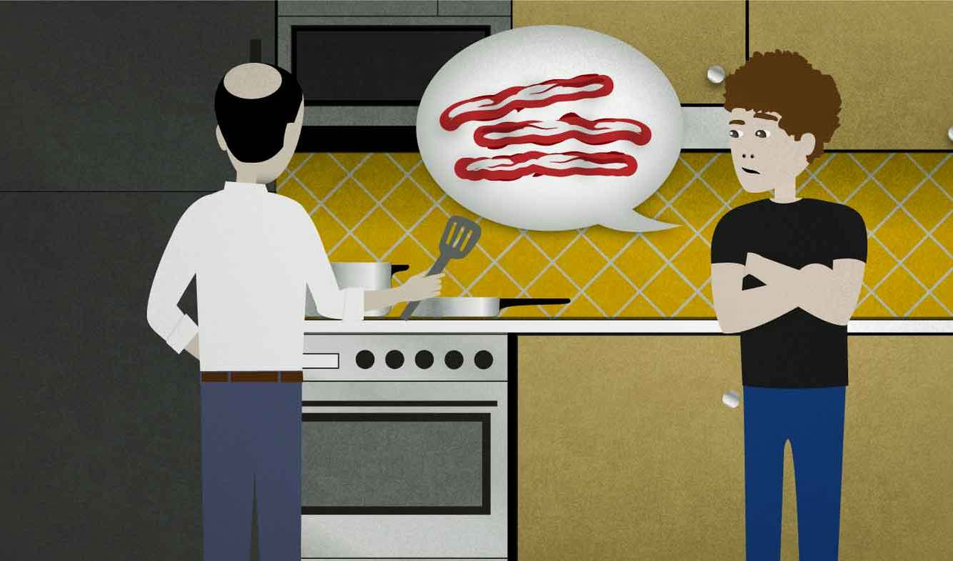 You went to a doctor for a bad cough and got some medicine. Now you’re at home and telling your husband what the doctor said.