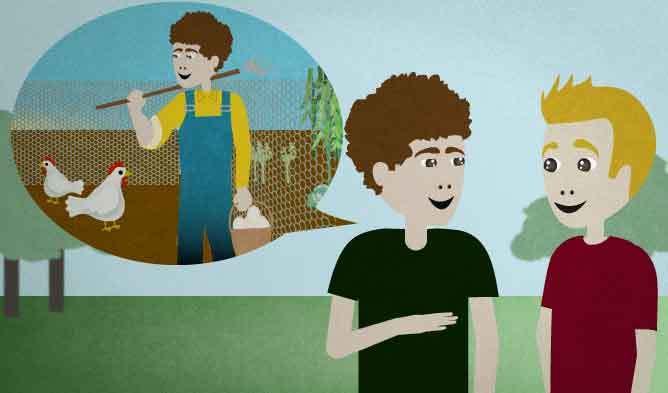 You live in the country. Recently you and your partner thought that it would be nice to have fresh eggs, so you thought about getting chickens. You describe this thought with a friend who already has chickens.