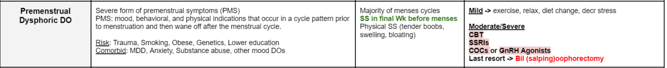 Tx for Mod/Severe Premenstrual Dysphoric DO