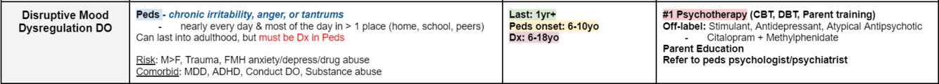 Disruptive Mood Disregulation DO Tx