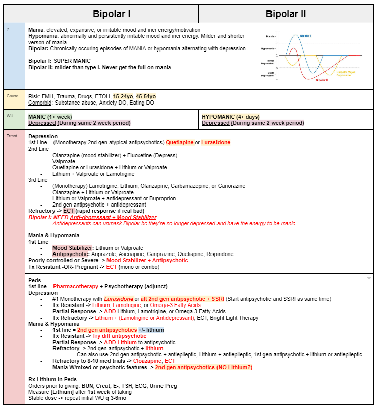 1st line Tx for Bipolar Mania/Hypomania