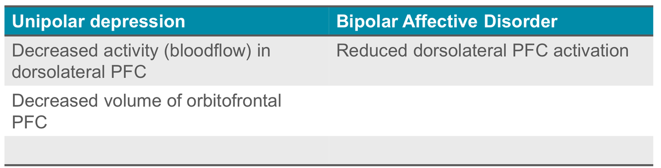 What are some of the possible changes to the frontal lobe in mood disorder?