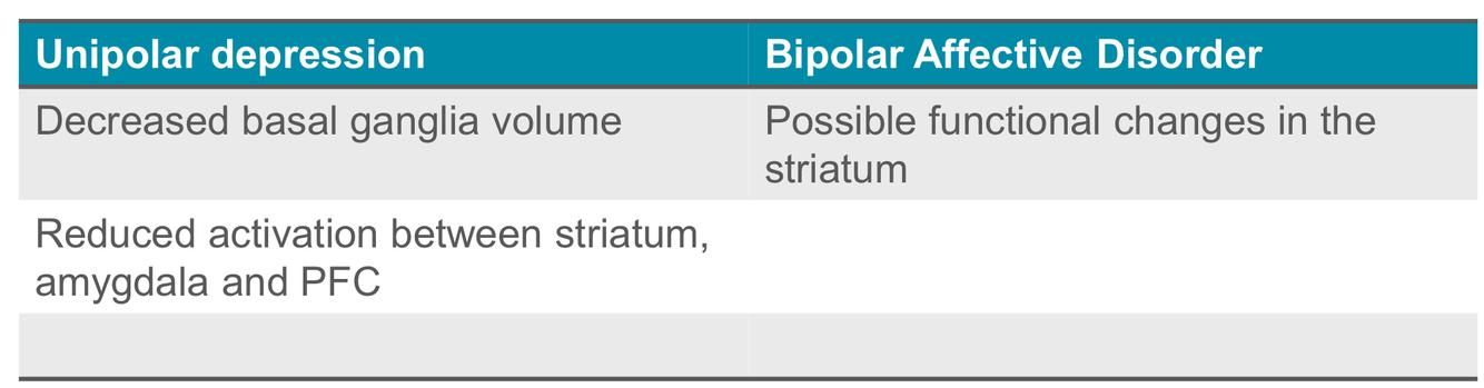 What are some of the possible changes to the basal ganglia that occur in mood disorder?