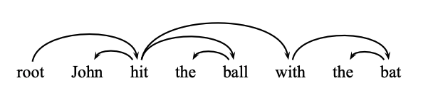 a form of analysis, in which we visualize representation where each word depends on exactly one parent, either another word or a dummy root symbol as shown in the figure