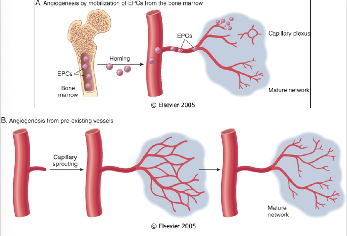 * Angiogenesis from endothelial precursor cells (EPC migrate from bone marrow to site of injury and differentiated into mature blood vessels)