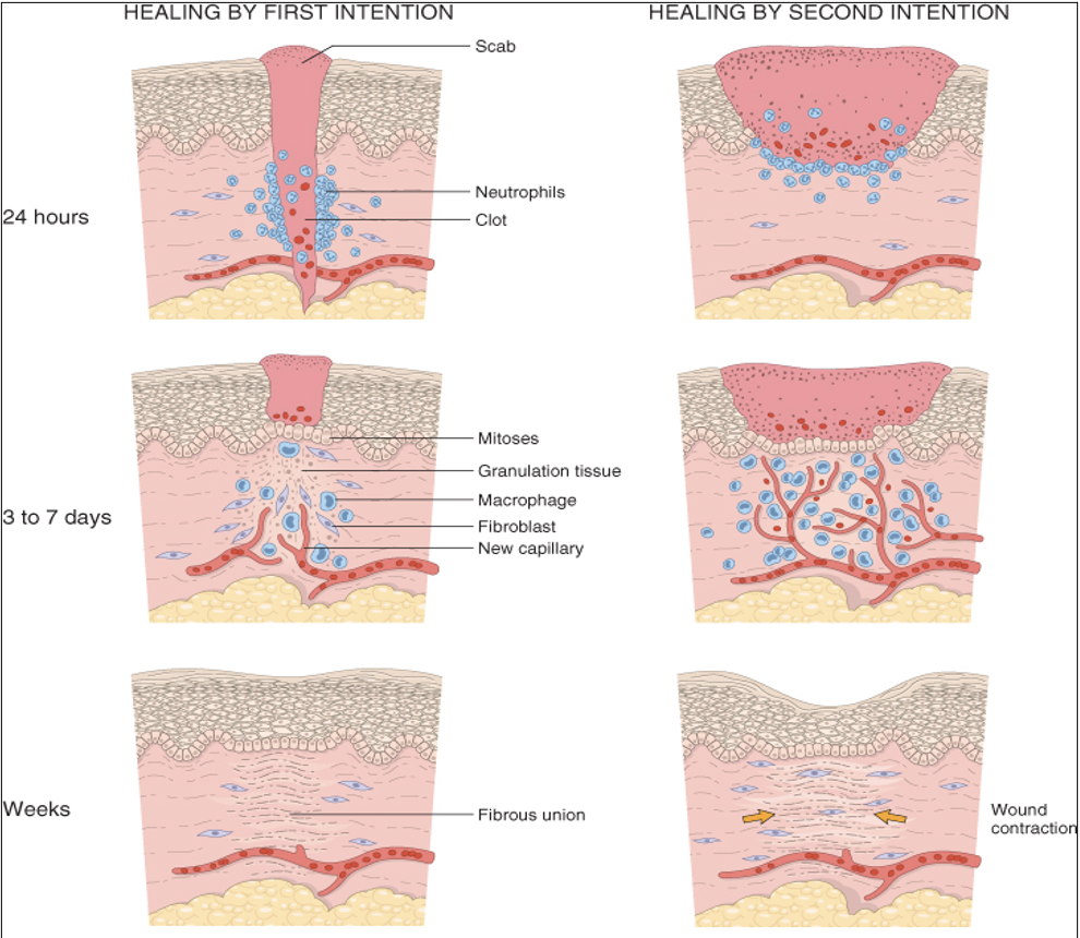 Healing by second intention differences from first intention