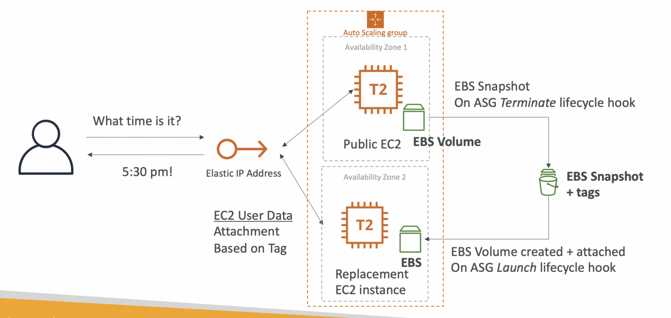 How do you create a highly available EC2 instance with an Auto Scaling Group and EBS?