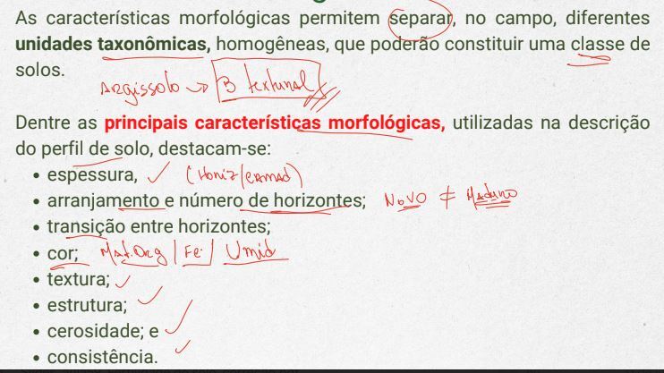 Quais as principais características morfológicas usada para descrição de um perfil de solo?
