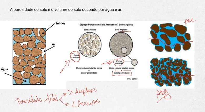 ( ) Os poros entre as partículas siltosas são bem maiores em relação àqueles entre as de