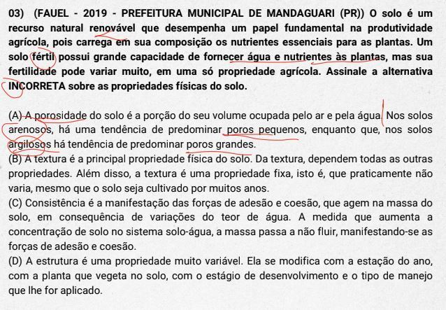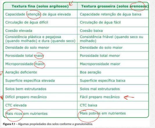 A respeito da textura e estrutura dos solos, marque (V) ou (F):