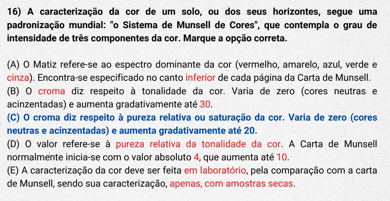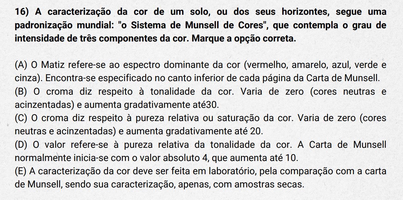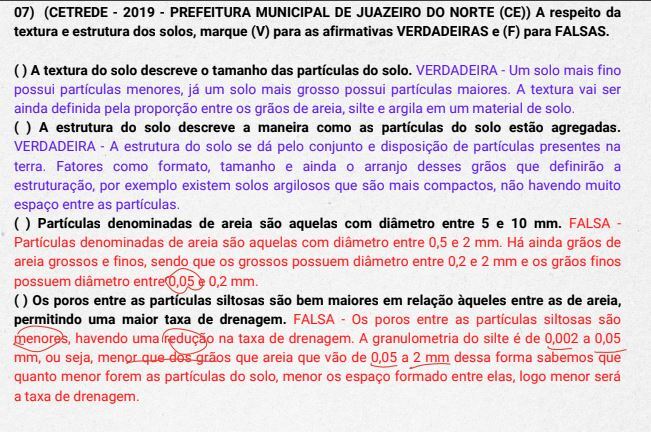 ( ) A textura do solo descreve o tamanho das partículas do solo.