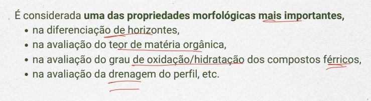 a) Matéria orgânica - tende a conferir aos solos as cores escuras, notadamente quando o material está úmido.